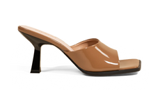 Mule à talon haut et bout carré en cuir verni beige Joya Nude Patent