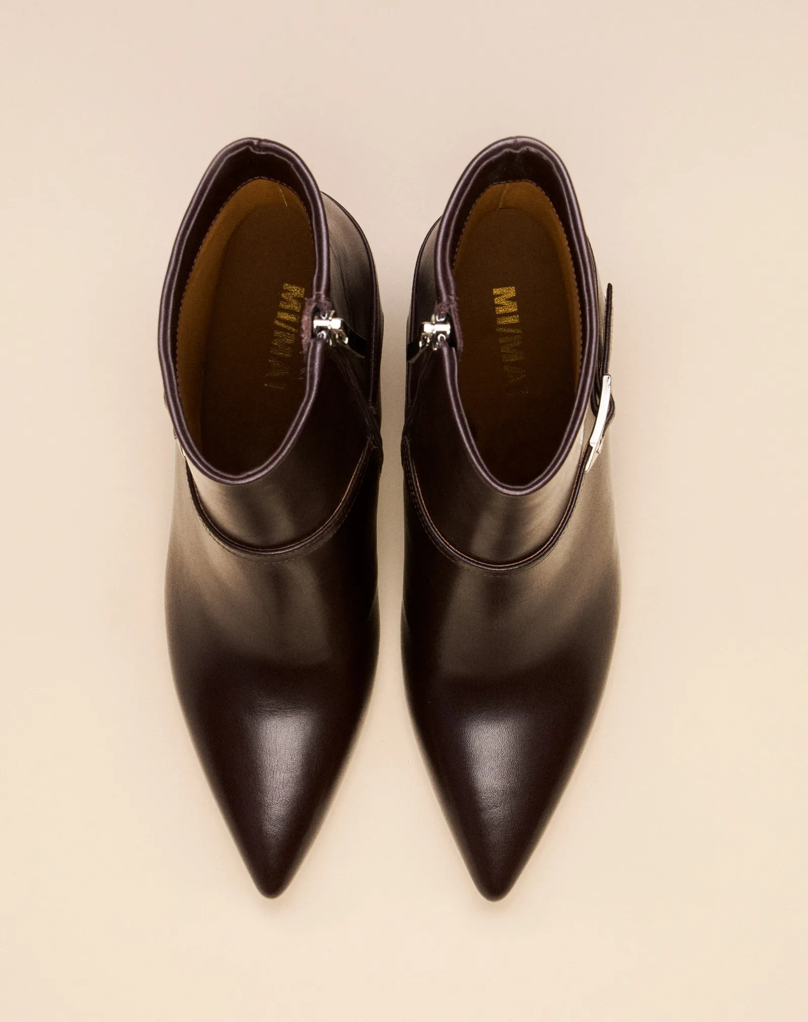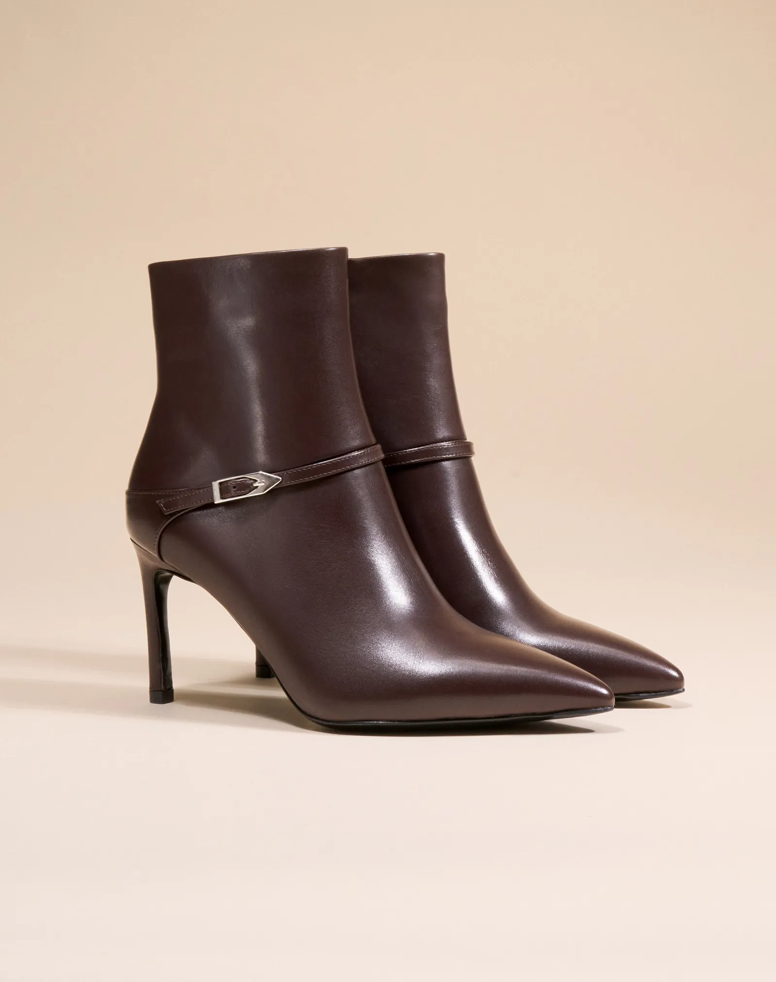 Les bottines Callas incarnent l'élégance pure avec leur cuir chocolat et leur ligne élancée.
