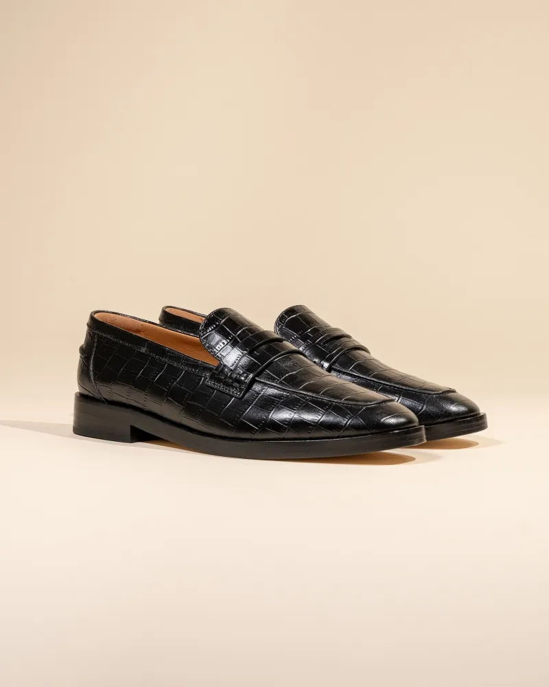 CROCODILE-EMBOSSED LEATHER LUCIANO BLACK CROC LOAFERS