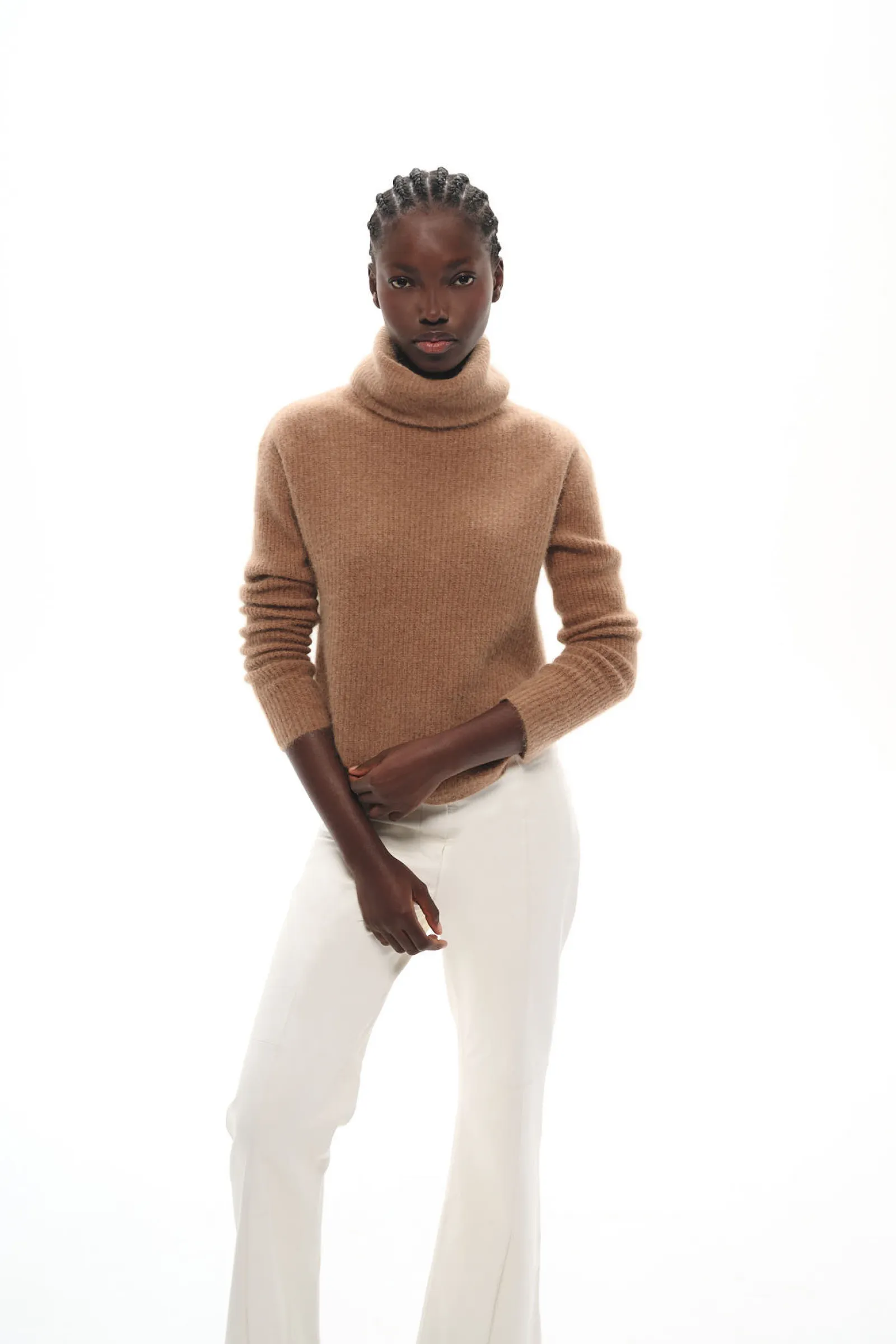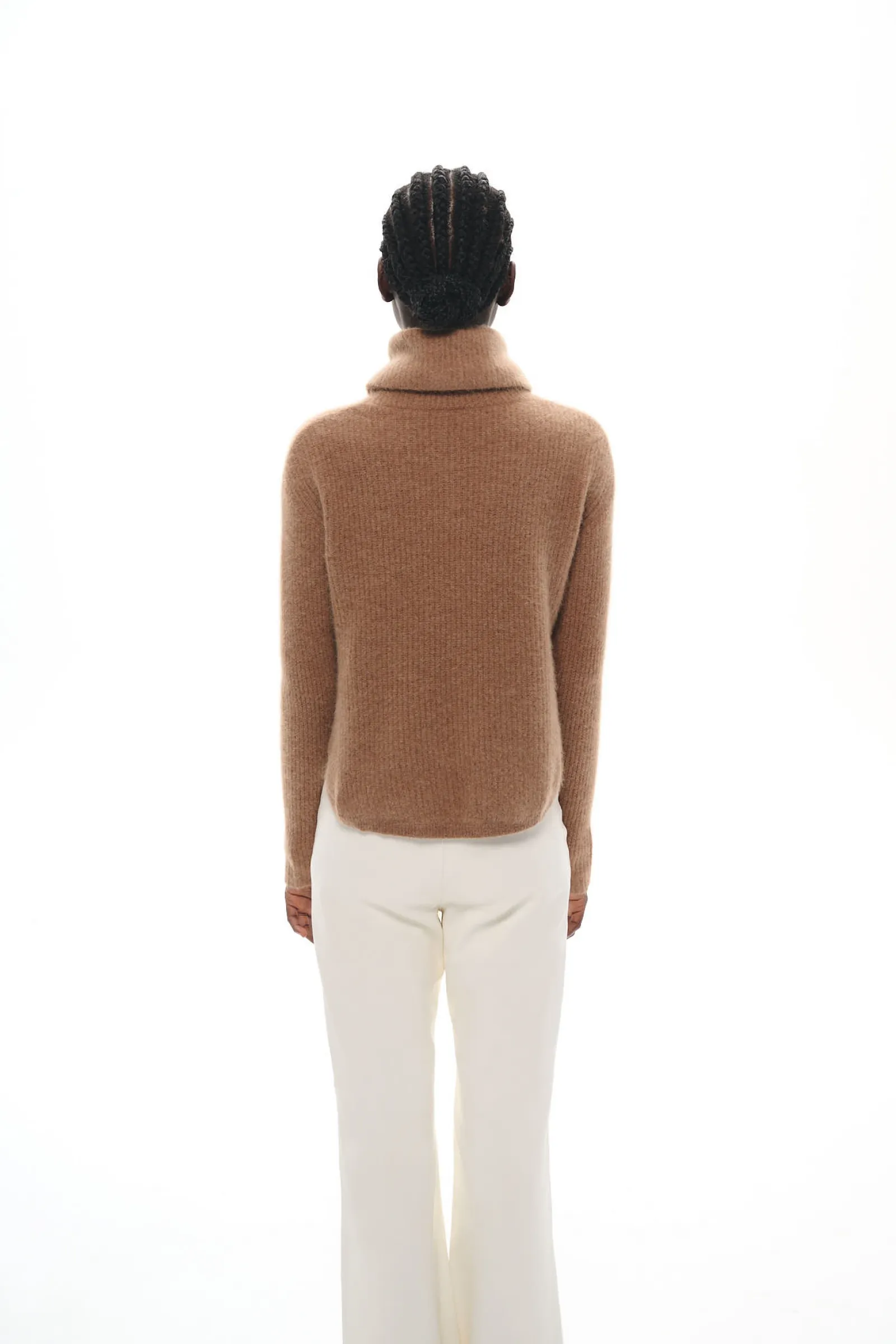 Ce pull col roulé en maille de raccoon enveloppe la silhouette d’une douceur exceptionnelle. Sa coupe ajustée au tombé impeccable en font une pièce essentielle du vestiaire hivernal.